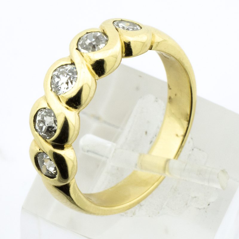 Anillo tipo trenza oro amarillo con cinco brillantes