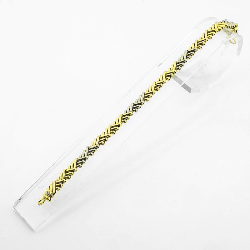 Pulsera tipo espiga chata oro tricolor